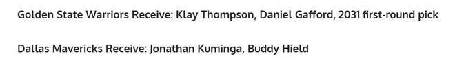 勇士得到:克莱+加福德+2031年首轮签