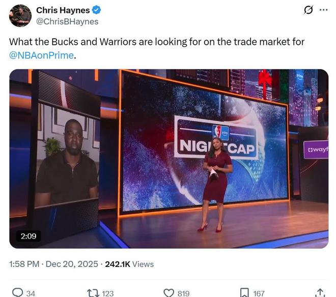 根据名记Chris Haynes在《NBA on Prime Nightcap》节目中透露,勇士队正在寻找运动能力出色,擅长空切顺下终结,同时可以提供稳定护框封盖的中锋。