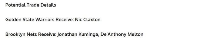 对于勇士队来说,这是一笔完美的交易方案,如果篮网队愿意押宝库明加,那么勇士队没有任何理由拒绝。