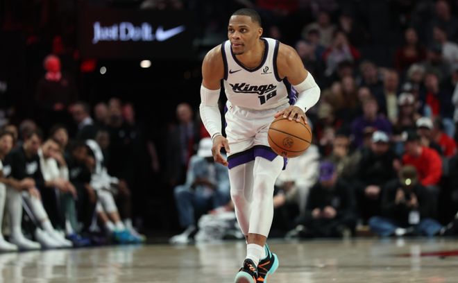 本赛季至今,威少在国王的发挥非常稳定,场均能够贡献13.8分。如果按照这个数据作为标准,然后威少在剩余的54场比赛能够满勤的话,赛季结束的时候他总得分能够来到27335分。